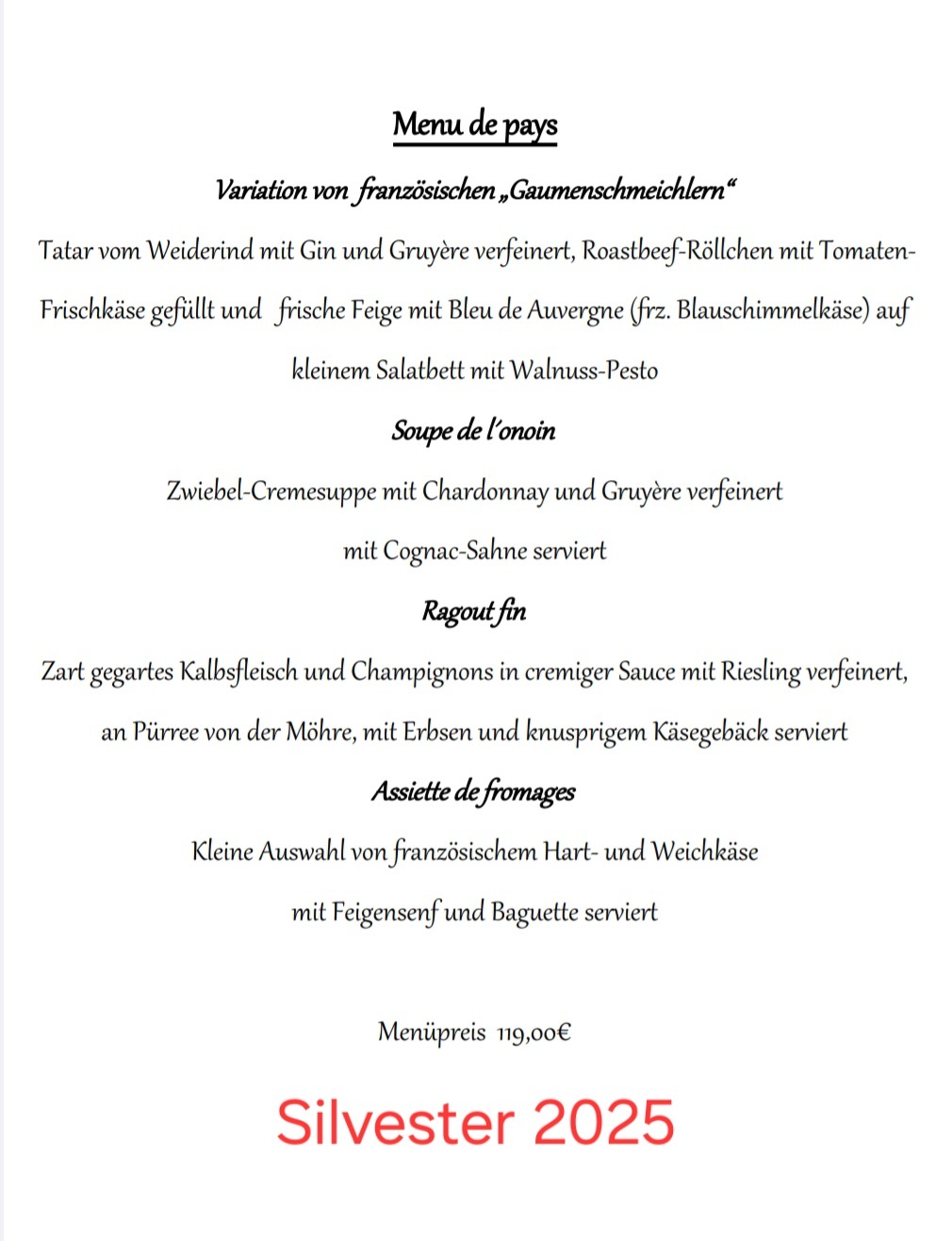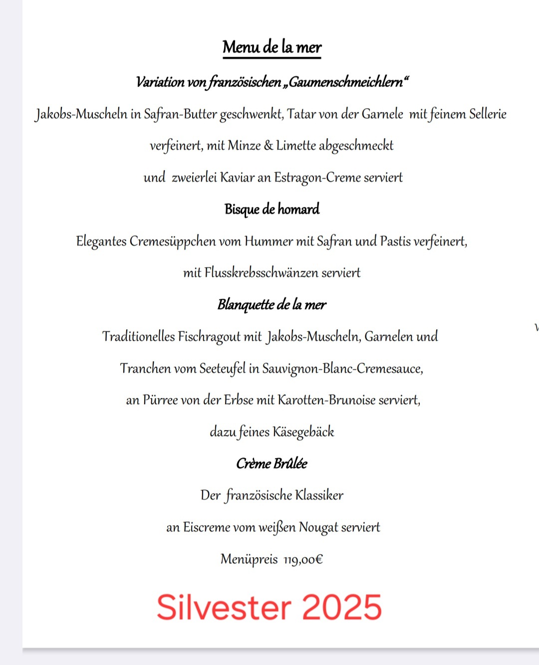 Silvestermenü nach Anmeldung 31/12/2025 |