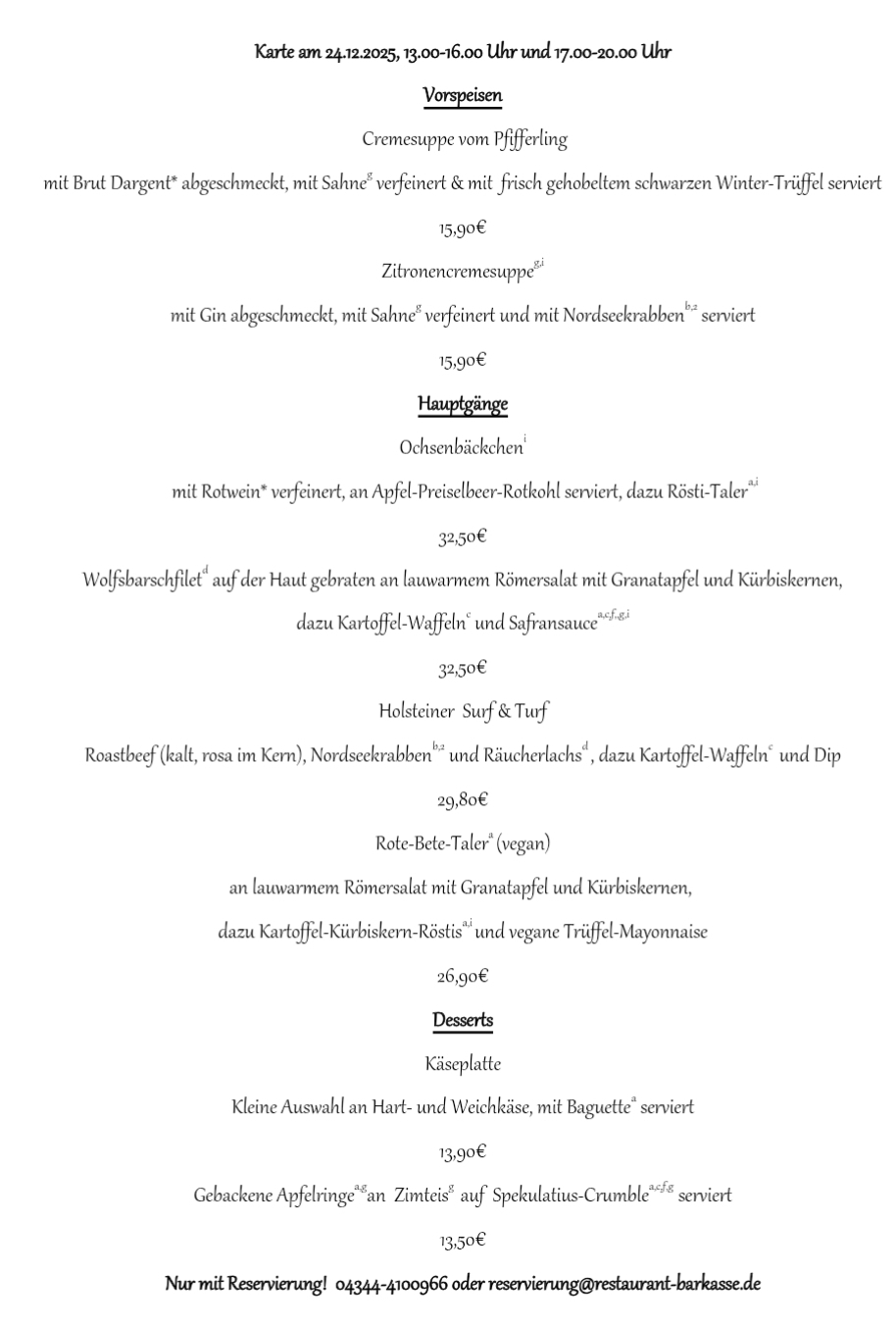 Heiligabend nur mit Reservierung 24/12/2025 |